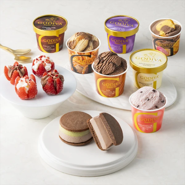 ゴディバの濃厚なチョコレートと、焼きたての生地やトッピングのハーモニーをお楽しみいただけます。