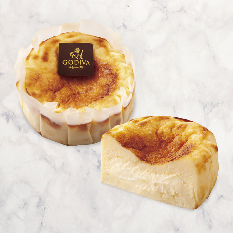 厳選したチーズを贅沢に使用し、隠し味にホワイトチョコレートを加えた、ゴディバならではのバスクチーズケーキ。塩味と甘味のバランスが絶妙な、深く複雑な味わいと、とろける口どけ。