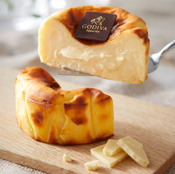 ホワイトチョコレートを加えた奥深い味わいがゴディバならではの、極上のバスクチーズケーキです。
