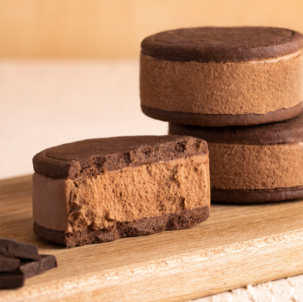 ココアクッキーのザクザク感と、やわらかくなめらかなクリームのハーモニーをお楽しみください。