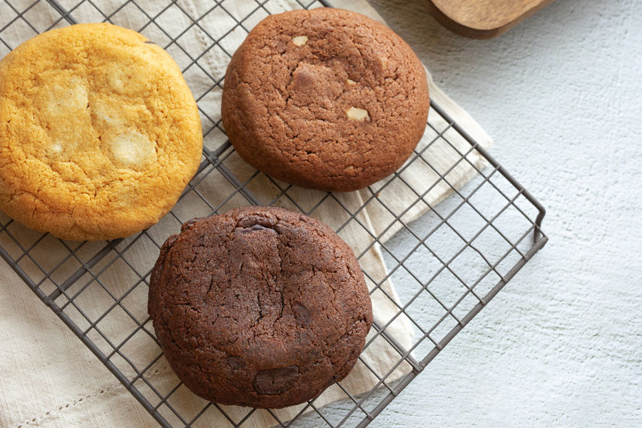 ソフトクッキーならではの、しっとり、やわらかな食感を実現するために、フレーバー毎に、焼成の温度・時間を少しずつ変えています。