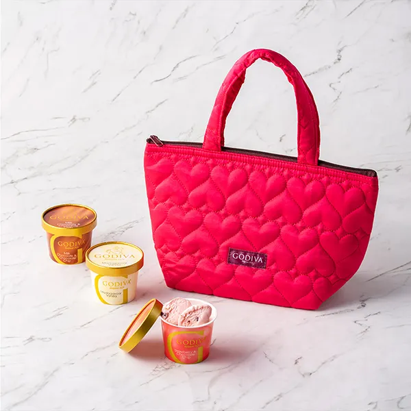 ゴディバ至福の120ml カップアイスクリーム特別限定アソートセット。アイスクリーム3種をデイリーに使いやすいゴディバオリジナル保冷バックに詰め合わせました。