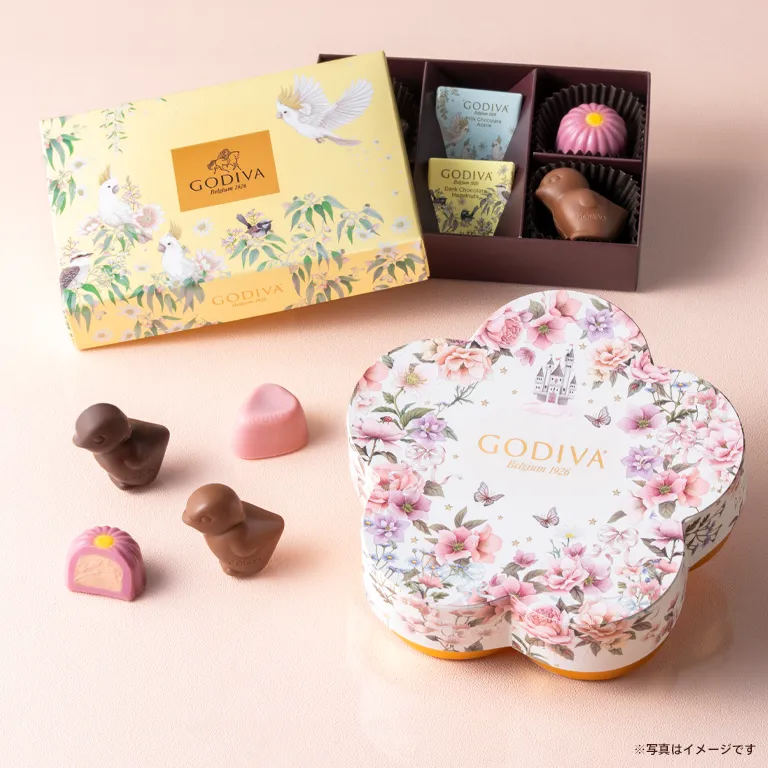 2026年春限定コレクション。春らしい色とりどりの花を表現したフラワー形のパッケージに、心躍るチョコレートを詰め合わせました。