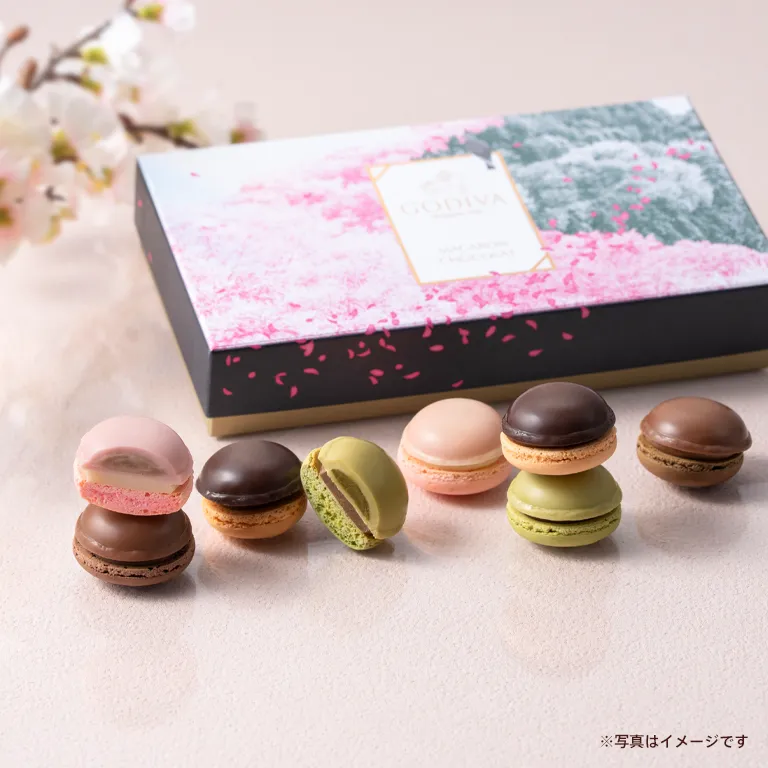 桜のイラストを用いたパッケージは、春のギフトにもふさわしいデザイン。大切な人への気持ちをマカロンにのせて伝えてみませんか?