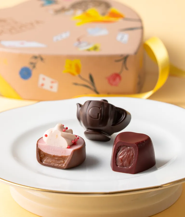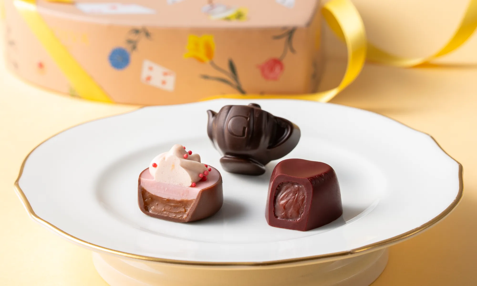 「不思議の国のアリス」の印象的なシーン「ティーパーティ」をイメージしたチョコレートを楽しめる、キュートな「アリスのティーパーティ コレクション」。