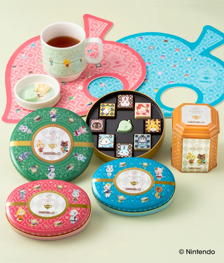 「ゴディバ meets どうぶつの森」が「ティーパーティ」のコンセプトで新登場。人気のたぬきちをはじめ、クリスチーヌ、アンソニーとパティをデザインしたプリントチョコレートなどを詰め合わせました。